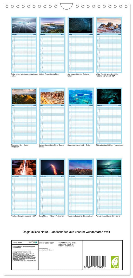 Vollständige Details anzeigenUnglaubliche Natur - Landschaften aus unserer wunderbaren Welt (CALVENDO Familienplaner 2026)