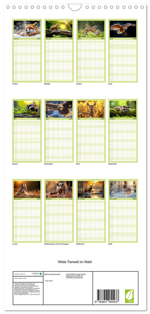 Vollständige Details anzeigenWilde Tierwelt im Wald (CALVENDO Familienplaner 2026)