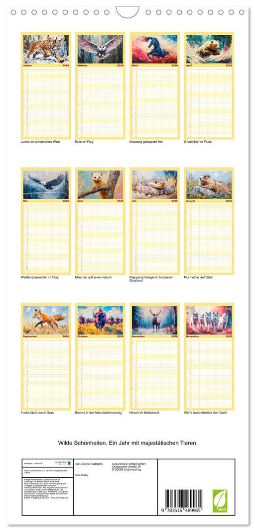 Vollständige Details anzeigenWilde Schönheiten. Ein Jahr mit majestätischen Tieren (CALVENDO Familienplaner 2026)