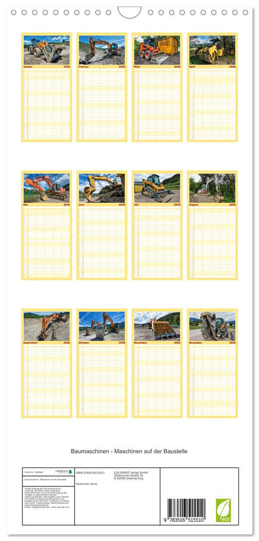 Baumaschinen - Maschinen auf der Baustelle (CALVENDO Familienplaner 2026)