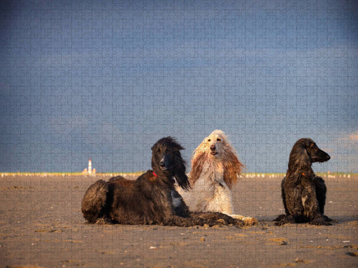 Vollständige Details anzeigenAfghanische Windhunde liegen am Strand in Sankt Peter-Ording - CALVENDO Foto-Puzzle'