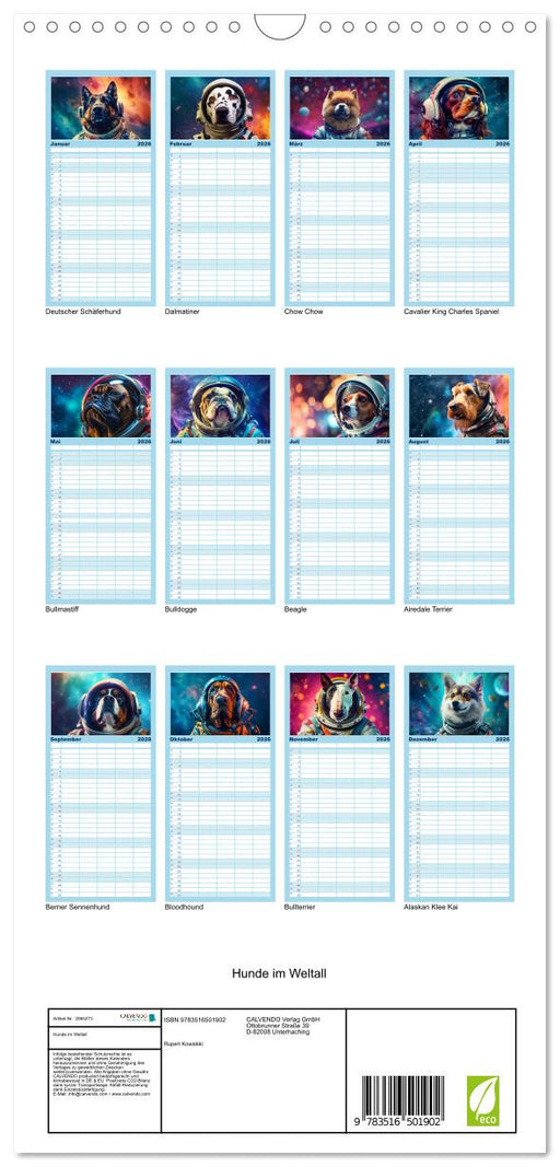 Vollständige Details anzeigenHunde im Weltall (CALVENDO Familienplaner 2026)