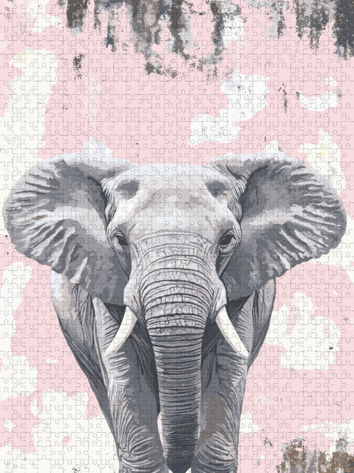 Ein stiller Moment – der rosa Elefant in Frontansicht begeistert durch sanfte Farben und weiche Collageformen. Geschenk für Safari Fans Mit abgew...