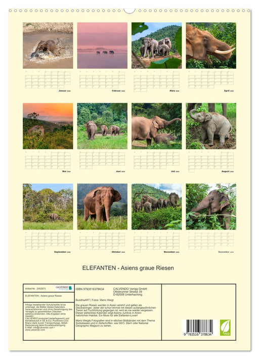 Vollständige Details anzeigenELEFANTEN - Asiens graue Riesen (CALVENDO Premium Wandkalender 2026)