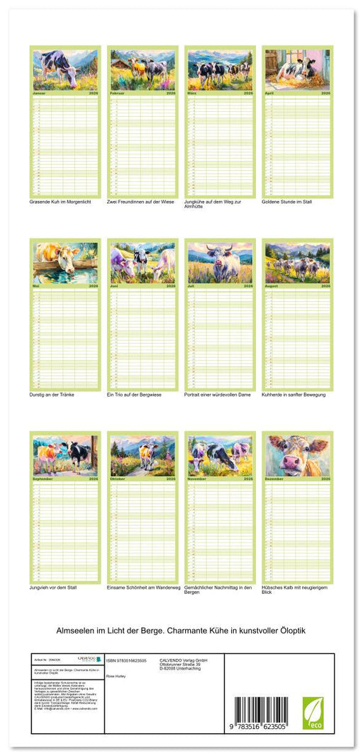 Vollständige Details anzeigenAlmseelen im Licht der Berge. Charmante Kühe in kunstvoller Öloptik (CALVENDO Familienplaner 2026)