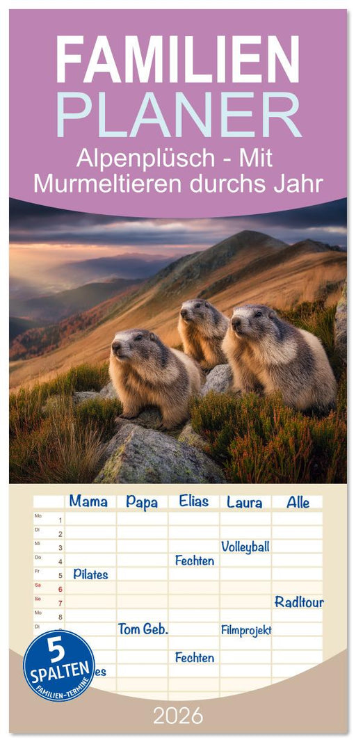 Alpenplüsch - Mit Murmeltieren durchs Jahr (CALVENDO Familienplaner 2026)