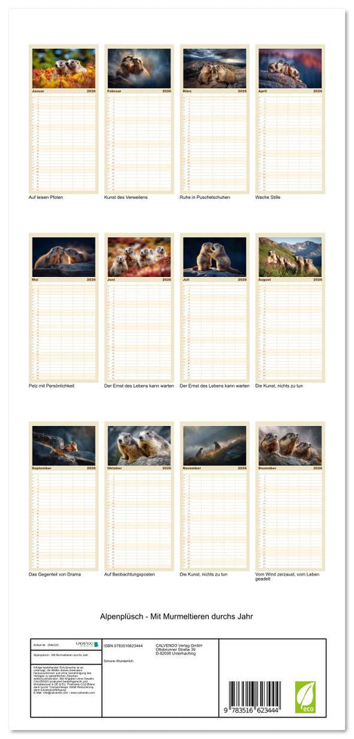 Vollständige Details anzeigenAlpenplüsch - Mit Murmeltieren durchs Jahr (CALVENDO Wandkalender 2026)
