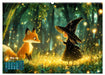 November: Auf einer verwunschenen Waldlichtung tanzt die fröhliche Hexe zusammen mit einem Hirsch mit leuchtendem Geweih.