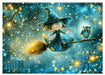 Dezember: Zusammen schmücken die kleinen Hexen den Himmel mit strahlenden Sternen und wünschen frohe Weihnachten.