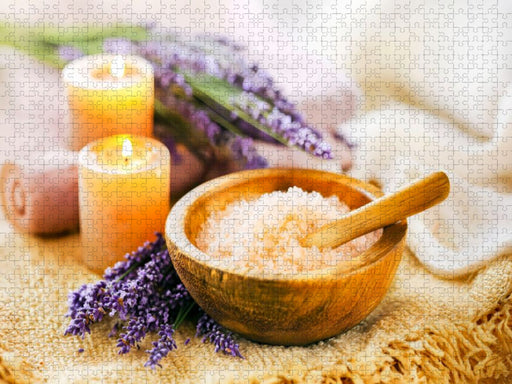 Lavendelsalz in Holzschale mit Kerzenlicht - CALVENDO Foto-Puzzle'