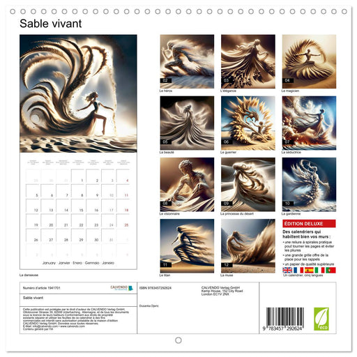 Une année de visions sableuses. (Calendrier mensuel, 14 Pages) Plongez dans un monde où le sable prend vie. Notre calendrier exclusif, créé avec i...