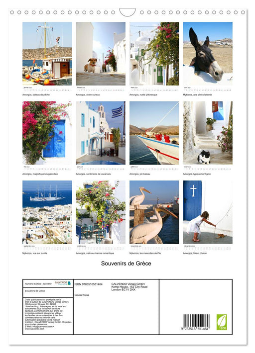 Désir de Grèce (Calendrier mensuel, 14 Pages) Replongez-vous dans vos souvenirs d'un voyage en Grèce et faites revivre toutes les impressions de c...