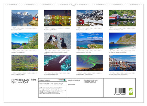 Vollständige Details anzeigenLandschaften Norwegens zwischen Polarkreis und Nordkap (CALVENDO Wandkalender 2026)