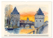 Kompaktes Reiseland im zarten Aquarell-Stil (Monatskalender, 14 Seiten)