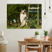 November: Im herbstlichen Wald sitzt ein Collie auf einem Baumstumpf