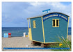 Januar: Strandkorb und gelbes Surfbrett am Strand