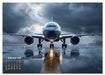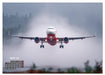 Februar: Flugzeug frontal auf nasser Landebahn bei Regen