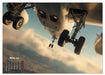 Oktober: Detailaufnahme Flugzeugfahrwerk in moderner Flughalle