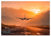 Mai: Anflug bei Sonnenuntergang über Bergsilhouette