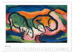 Die farbenfrohen und poetischen Gemälde Franz Marcs erfreuen sich nicht nur bei Kunstliebhabern einer ungebrochenen Beliebtheit. Dieser Kalender umfasst einige der bekanntesten Tierdarstellungen des expressionistischen Malers in höchster Bildqualität.