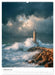 Februar: Majestätischer Leuchtturm an einer felsigen Küste bei Sturm