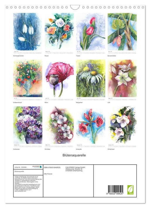 Mit zarten Aquarellblüten durch das Jahr (Monatskalender, 14 Seiten) Heimische und exotische Blüten begleiten den Zuschauer durch das Jahr, meiste...