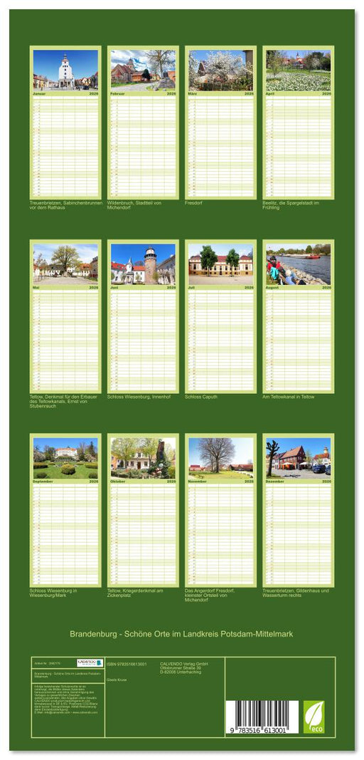 Vollständige Details anzeigenBrandenburg - Schöne Orte im Landkreis Potsdam-Mittelmark (CALVENDO Familienplaner 2026)