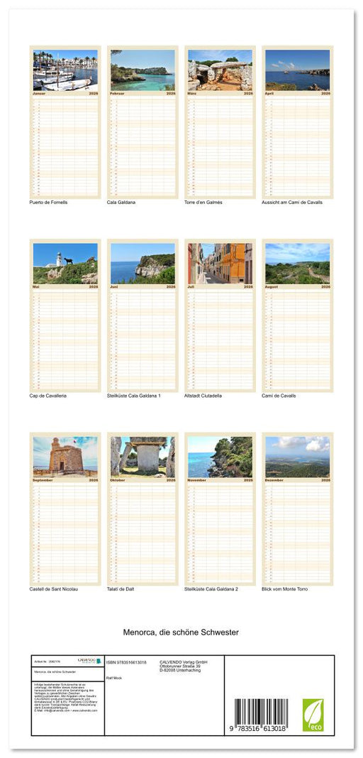 Vollständige Details anzeigenMenorca, die schöne Schwester (CALVENDO Familienplaner 2026)