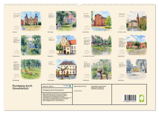 Zauberhafte Bilder im Aquarell-Stil (Monatskalender, 14 Seiten) Grevenbroich ist eine charmante Stadt im Rheinland und liegt in den sogenannten Er...