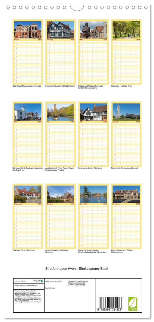 Vollständige Details anzeigenStratford upon Avon - Shakespeare-Stadt (CALVENDO Familienplaner 2026)
