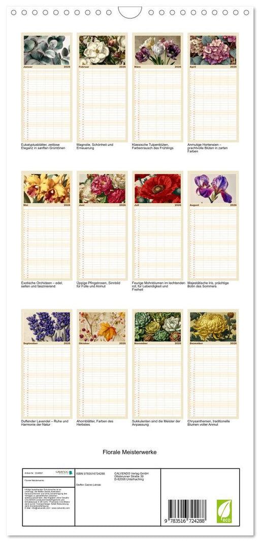 Vollständige Details anzeigenFlorale Meisterwerke (CALVENDO Familienplaner 2026)