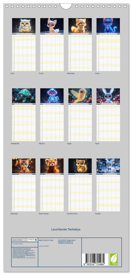 Leuchtende Tierbabys (CALVENDO Familienplaner 2026)