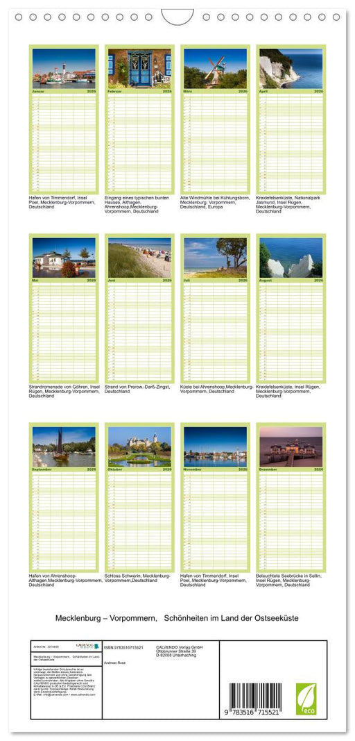 Mecklenburg – Vorpommern, Schönheiten im Land der Ostseeküste (CALVENDO Familienplaner 2026)