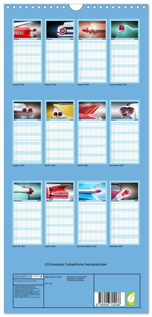 US Klassiker Farbenfrohe Heckansichten (CALVENDO Familienplaner 2026)