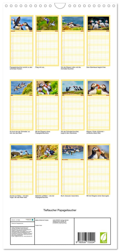 Vollständige Details anzeigenTieftaucher Papageitaucher (CALVENDO Familienplaner 2026)