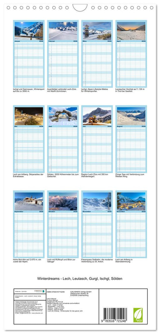 Vollständige Details anzeigenWinterdreams - Lech, Leutasch, Gurgl, Ischgl, Sölden (CALVENDO Familienplaner 2026)