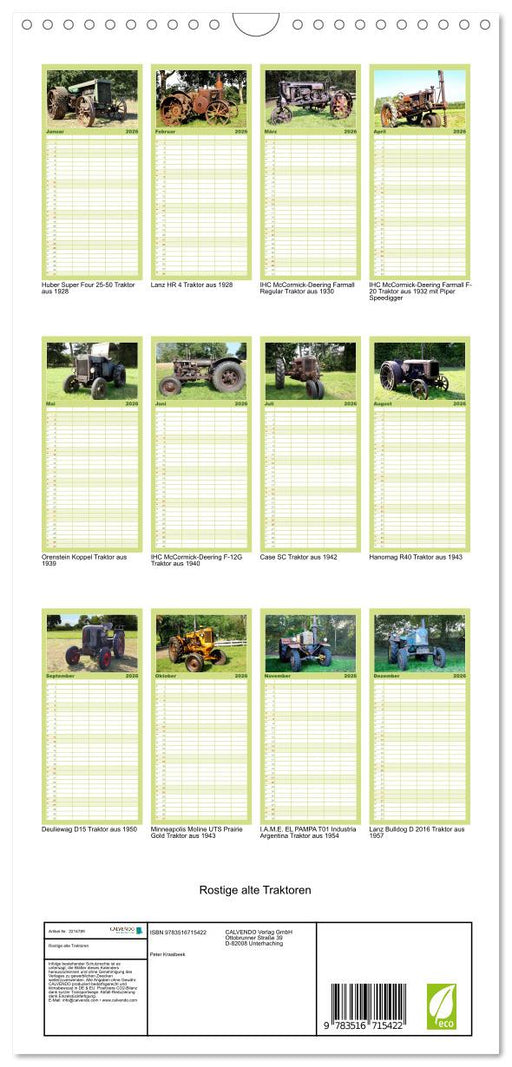 Vollständige Details anzeigenRostige alte Traktoren (CALVENDO Familienplaner 2026)
