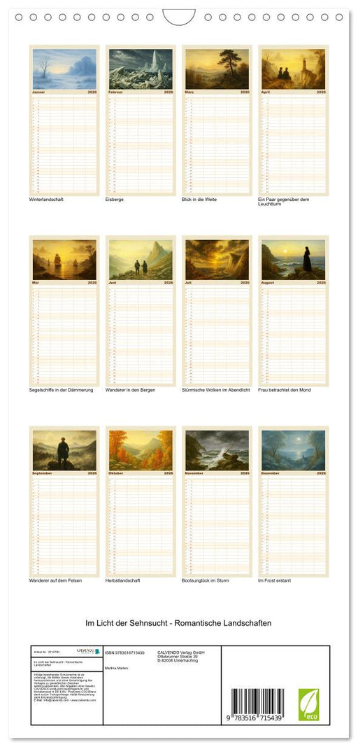 Vollständige Details anzeigenIm Licht der Sehnsucht - Romantische Landschaften (CALVENDO Familienplaner 2026)