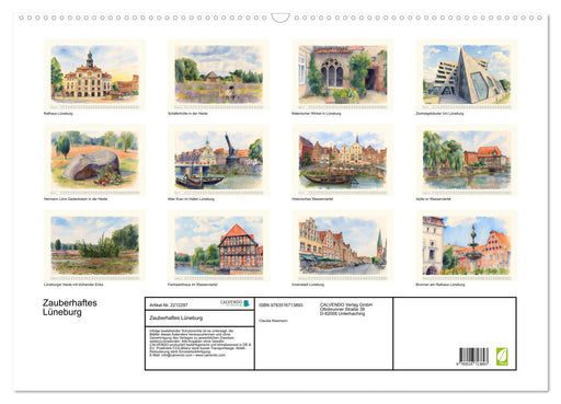 Künstlerische Bilder im Aquarellstil von Stadt und Heide (Monatskalender, 14 Seiten) Lüneburg ist eine charmante, historische Stadt mit reicher Ku...