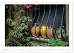 Oktober: Blumenfenster mit blauen Fensterlaeden in Grimaud