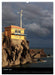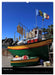 Oktober: rotes Fischerboot am Strand bei Calheta