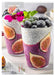 Februar: Vegane Joghurtcreme mit Feigen, Chiapudding und essbaren Blüten dekoriert