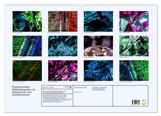 Makrofotografie daheim mit einfachen Hilfsmitteln. (Monatskalender, 14 Seiten) Aluminiumfolie, schwarzer Autolack, Eisenpulver, Magnete, Schrauben...