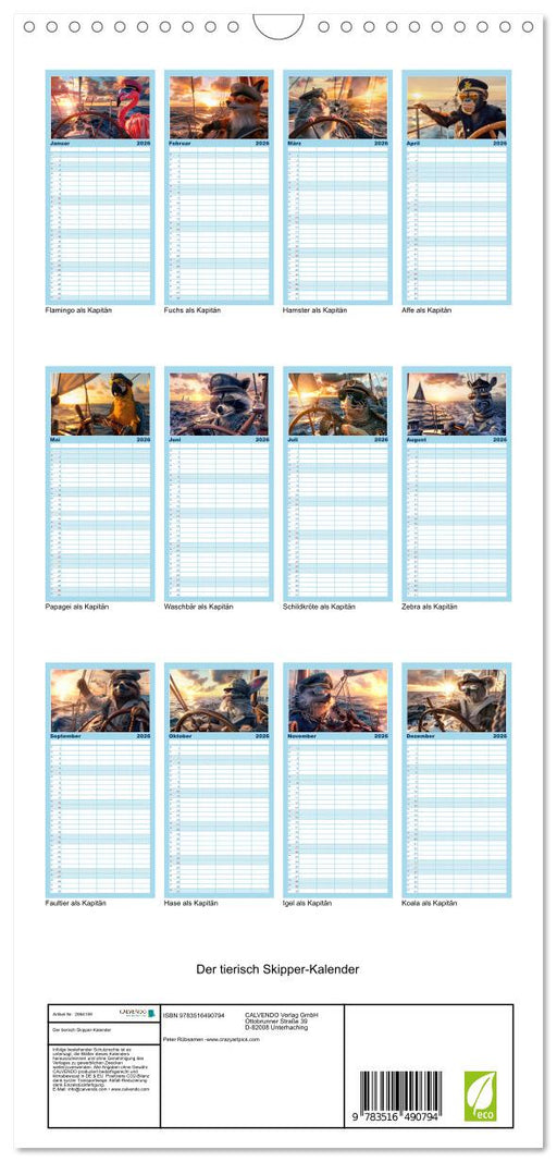 Vollständige Details anzeigenDer tierisch Skipper-Kalender (CALVENDO Familienplaner 2026)