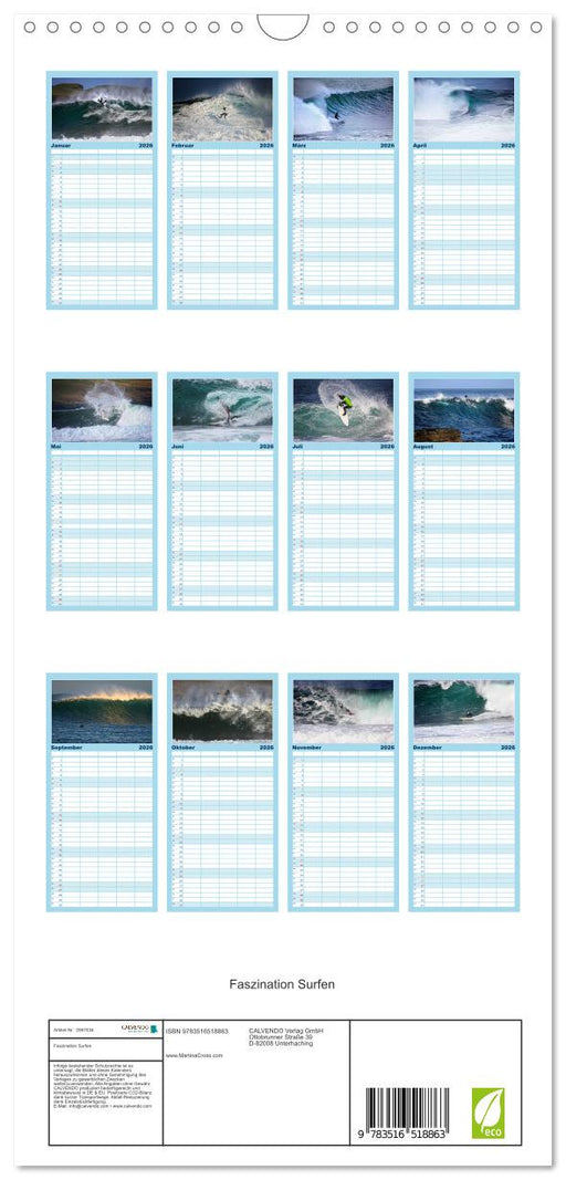 Vollständige Details anzeigenFaszination Surfen (CALVENDO Familienplaner 2026)