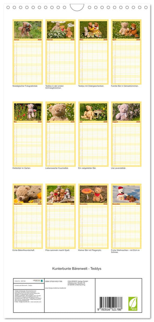 Vollständige Details anzeigenKunterbunte Bärenwelt - Teddys (CALVENDO Familienplaner 2026)