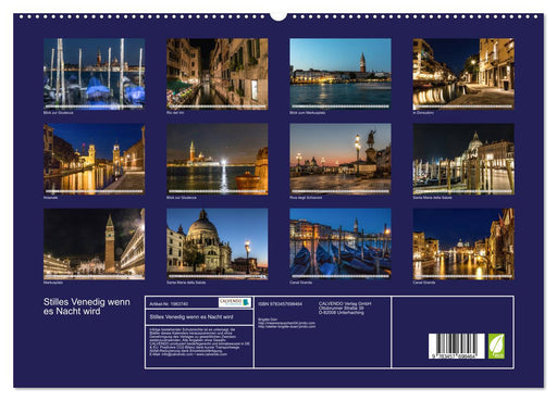 Nächtliche Ansichten einer Stadt voller Romantik und Stille (Monatskalender, 14 Seiten) Wenn abends in Venedig Ruhe einkehrt, bummelt die Fotograf...