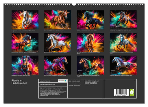 Farbenexplosionen in Pferdehufen (Monatskalender, 14 Seiten) Tauche ein in die Welt der lebendigen Farben und der majestätischen Pferde! Der Kalen...