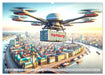 April: Eine vorausladende Drohne über dem Schiff demonstriert die fortschrittliche Drohnenlogistik im Hafen, indem sie Container noch vor dem Anlegen des Schiffes entlädt.