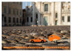 Juni: Städtischer Roadtrip: Das orangene Gefährt mit Wohnwagen meistert holprige Pflasterstraßen mit Stil